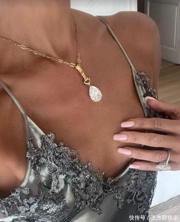 贝嫂戴了一款足有15克拉的钻石项链。15克拉的钻石已经不小了,亮晶晶的钻石在她胸前闪烁着璀璨的光芒,非常亮眼。